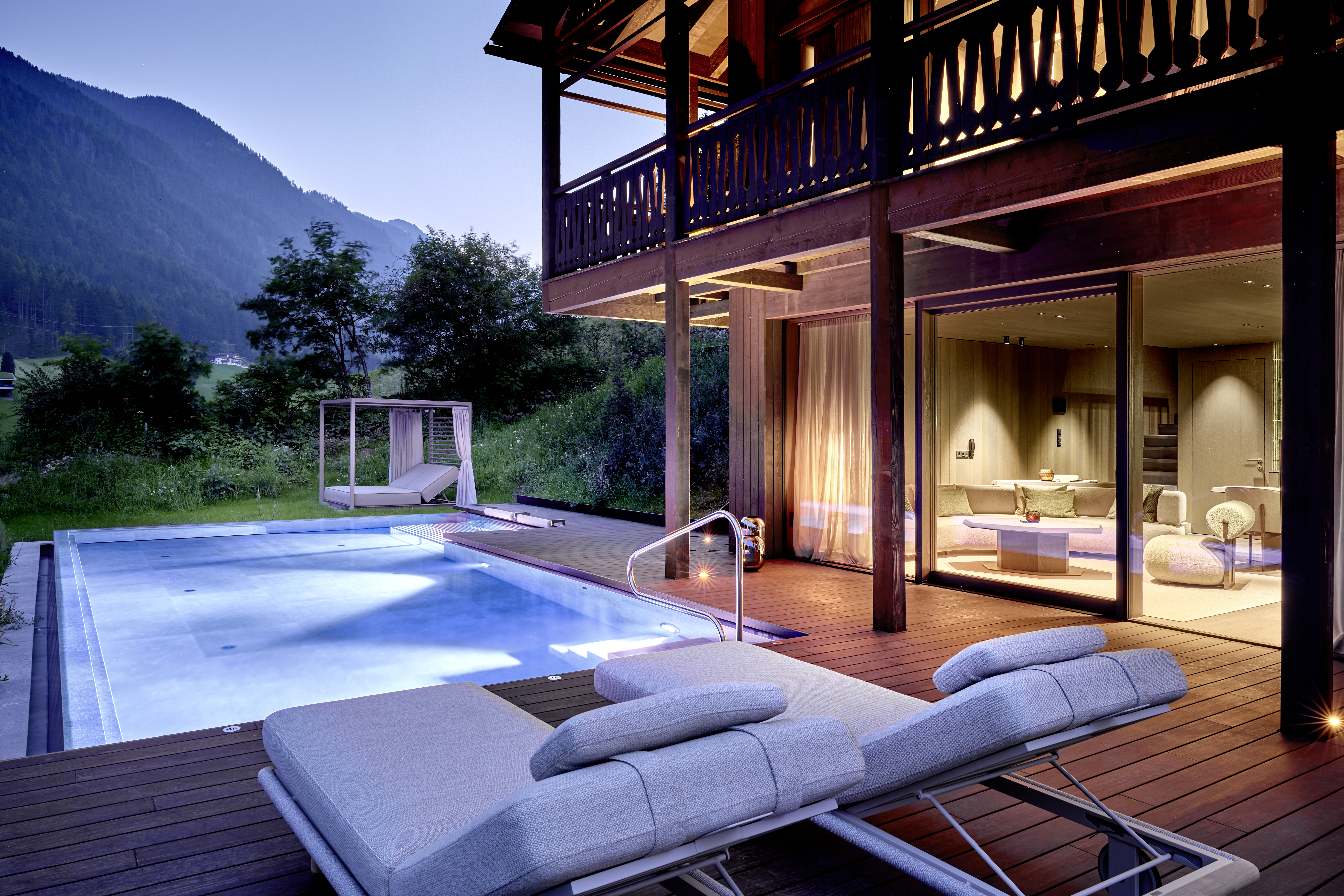 Private Pool Moments bei Abenddämmerung