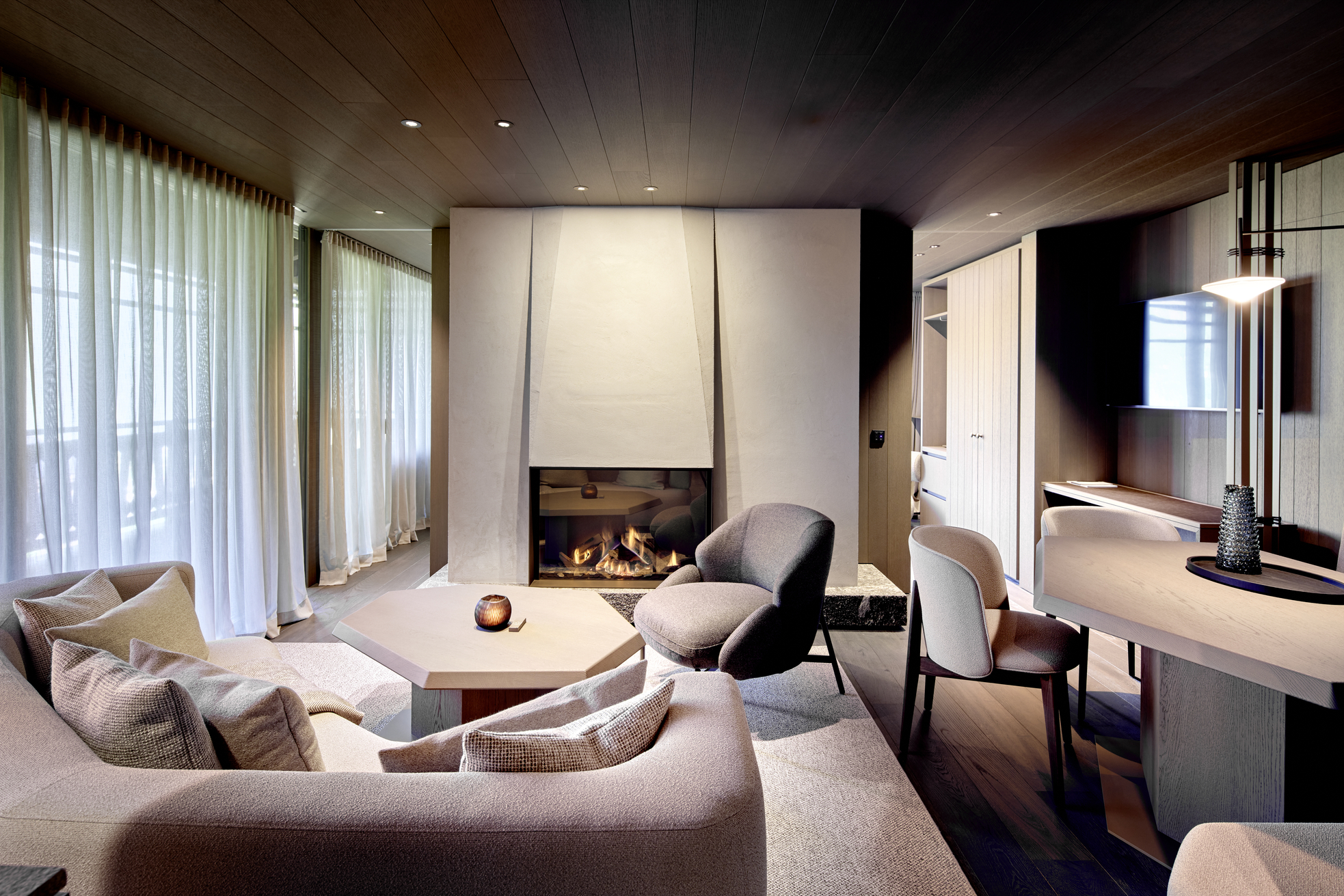 Stilvolle Suite mit Kamin und Designmöbeln
