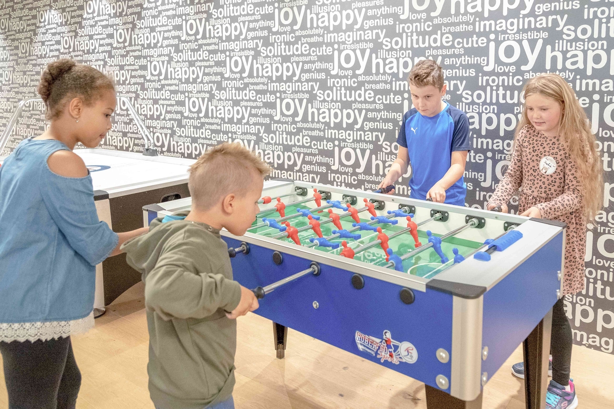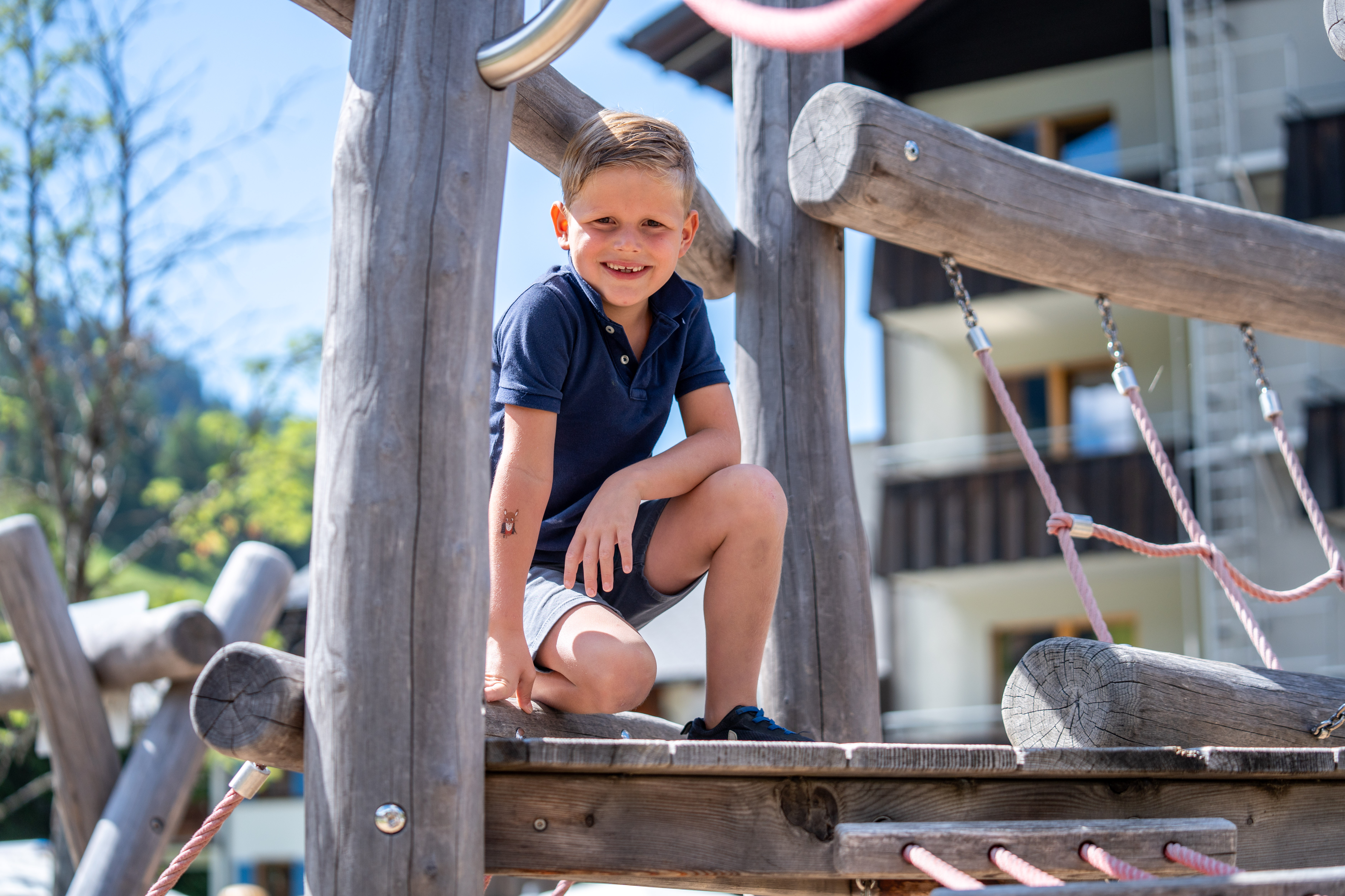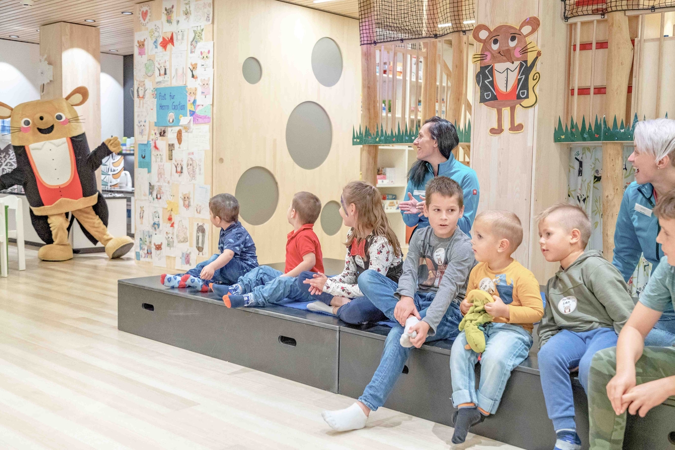 Abklatschen mit Herrn Gorfion (Gorfion Familotel Liechtenstein)
