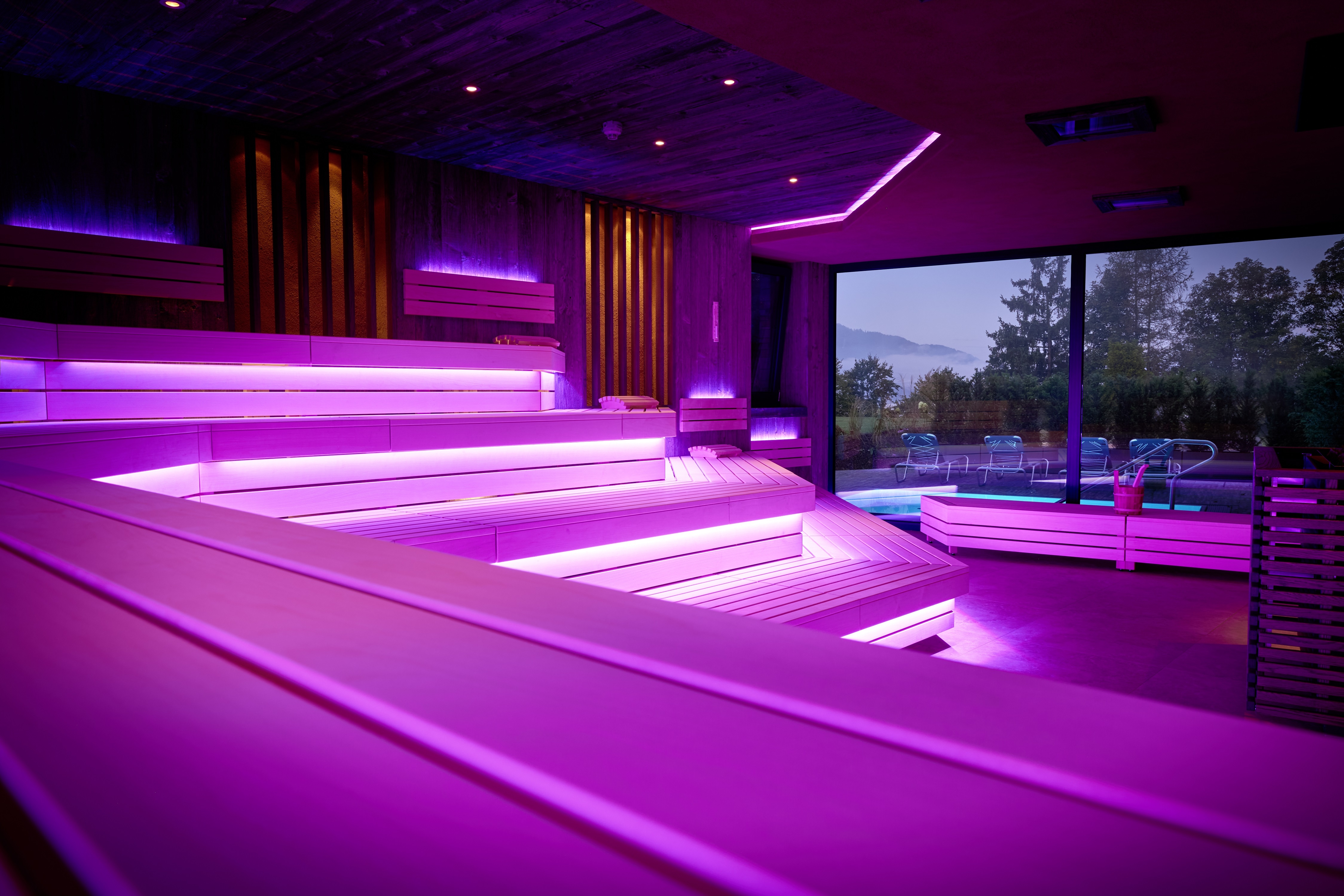 Warme Holzwände umhüllen die Gäste im Lumina Vitalis