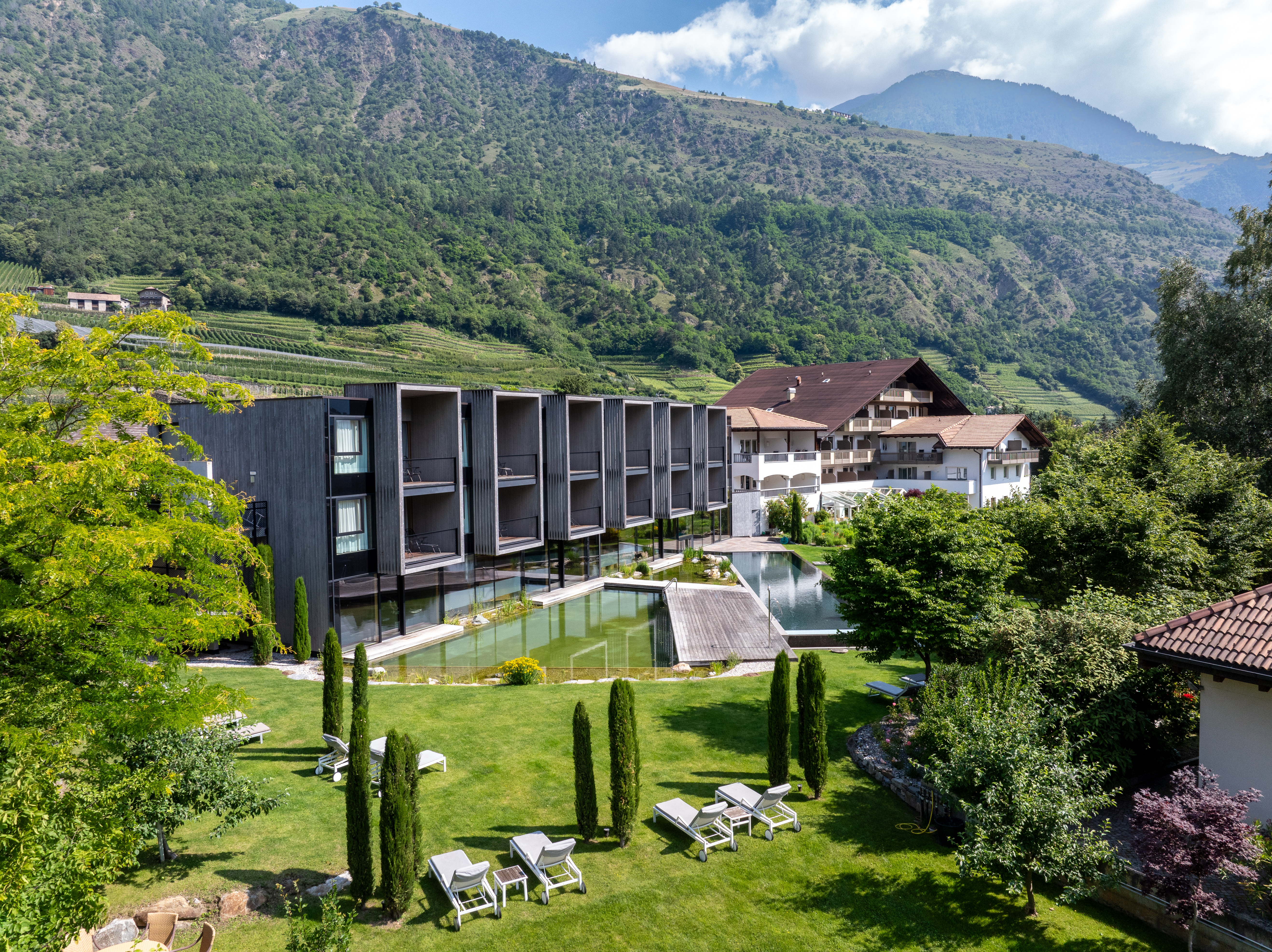 Hotel Sand****ˢ Mühlweg 2 , 39020 Kastelbell-Tschars +39 0473 62 41 30 info@hotel-sand.com http://www.hotel-sand.com Ansicht des Hotel Sand mit Gartenanlage Quelle: Hotel Sand 72 DPI 300 DPI