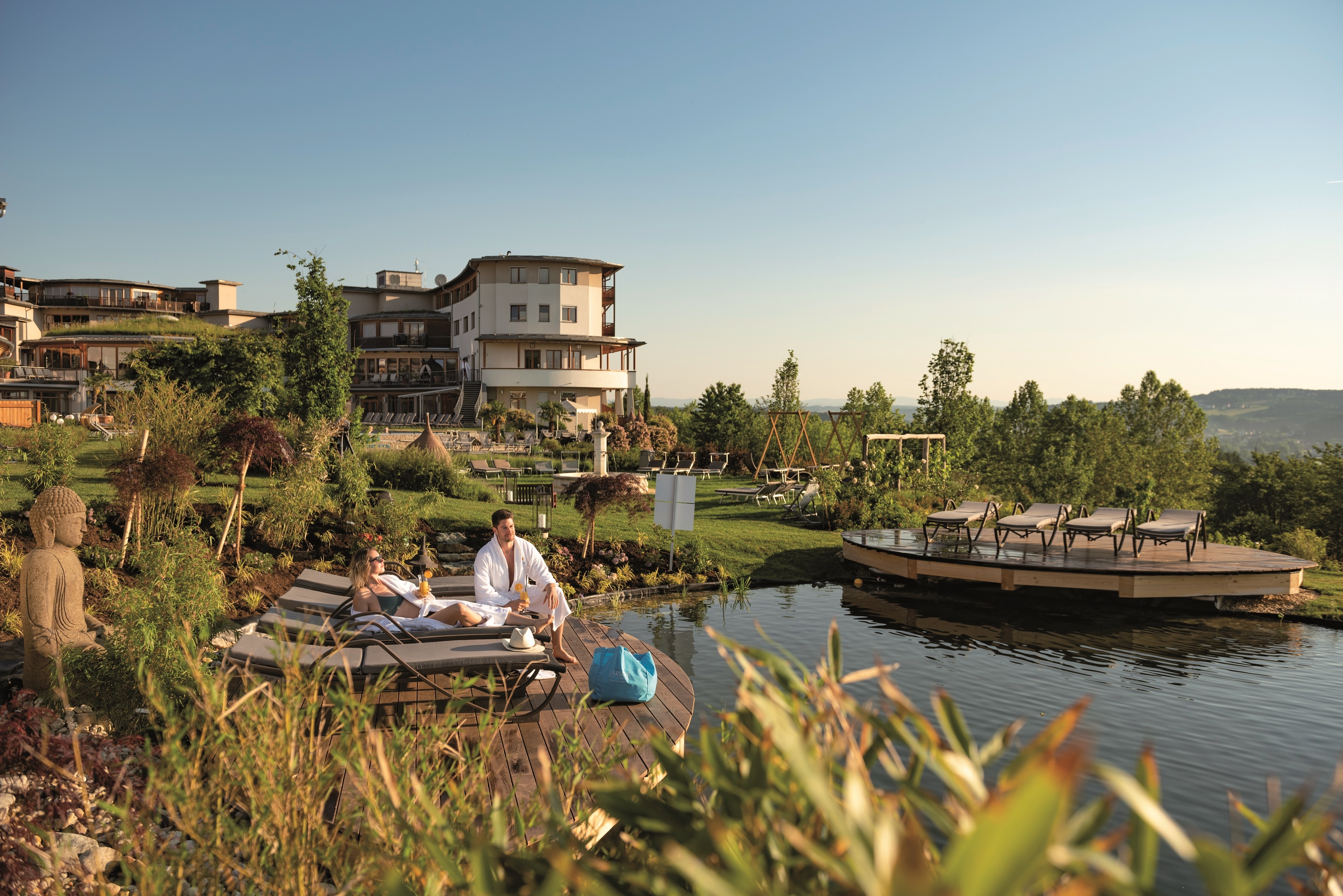 Hotel & Spa Larimar****ˢ Panoramaweg 2 , 7551 Stegersbach +43/(0)3326/55100 urlaub@larimarhotel.at http://www.larimarhotel.at Die Seele baumeln lassen in der Gartenanlage mit Koiteich Quelle: Bernhard Bergmann (Hotel Larimar) 72 DPI 300 DPI