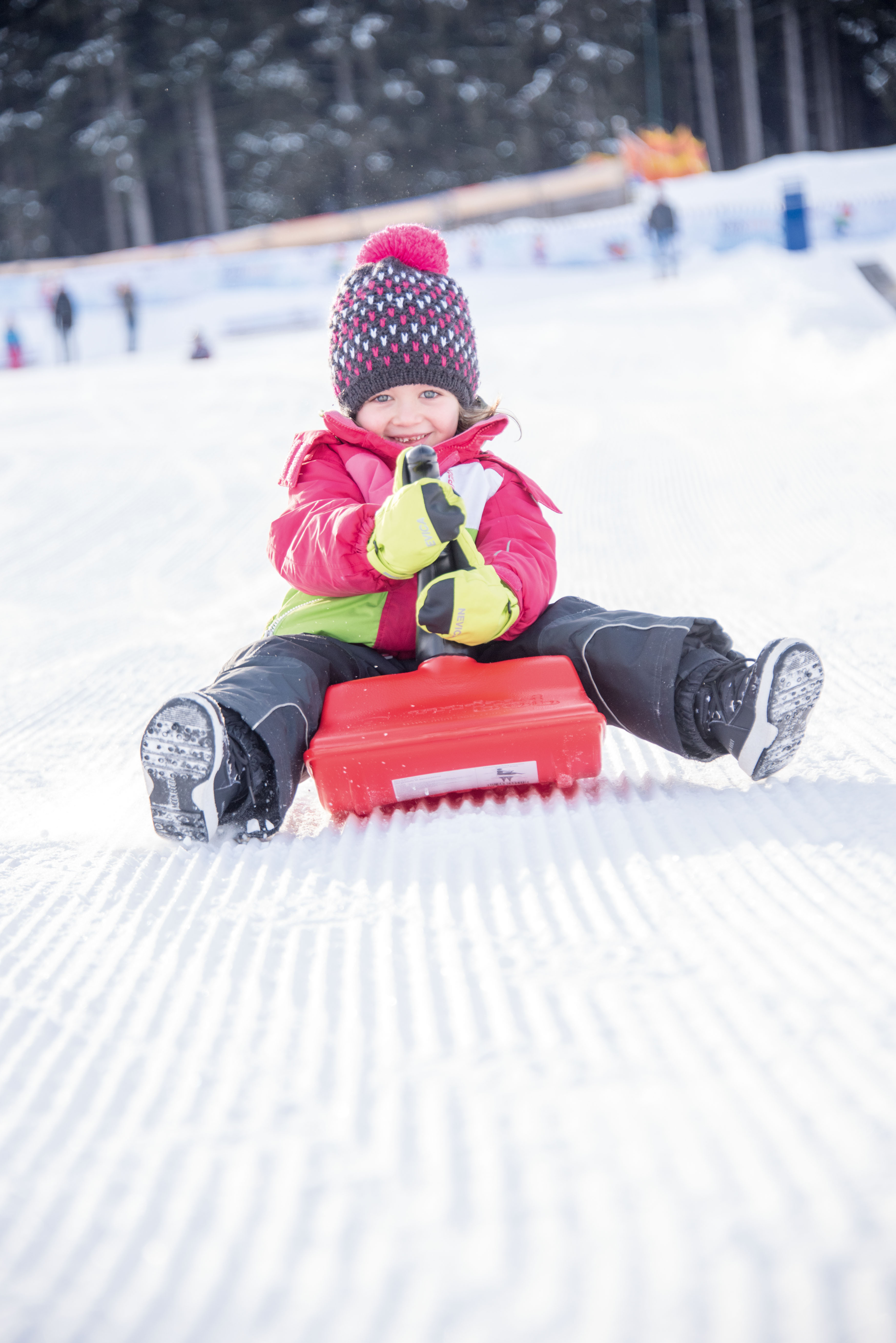 Kleines Mädchen beim Bobfahren
