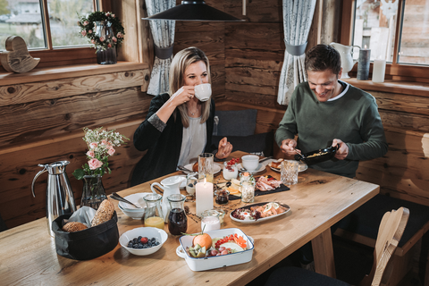 Het Alpzitt-gevoel ontstaat uit vele ogenschijnlijk kleine dingen. Wanneer de ochtend langzaam aanbreekt, wordt de ontbijtmand met veel liefde samengesteld en bij het chalet bezorgd. Lentebloemen uit de boerentuin op tafel. De geur van hout, materialen die echt aanvoelen. En soms mag het ook net iets meer zijn – een gastronomisch menu in het eigen chalet, een goede fles wijn, een glas champagne of een verjaardagstaart voor je geliefde. Geen enscenering, geen speciale gelegenheid. Alleen het besef dat bijna alles mogelijk is. Luxe toont zich hier niet luid, maar zacht. In momenten. In sferen.