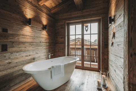 Water heeft in de Alpzitt Chalets een lange traditie. Ooit de krachtbron van de zagerij, vandaag een centraal element van ontspanning. In het het hele jaar verwarmde buitenzwembad, in het natuurmeer of in de houtgestookte hot tub direct bij het chalet ontvouwt het zijn weldadige kracht. Warm water, lentelucht en stilte – momenten die verbinden.