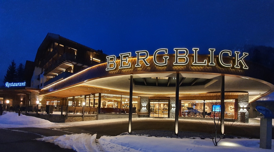 Bergblick Hotel & Spa***** Am Lumberg 20 , 6673 Grän, Tannheimer Tal +43/(0)5675/63960 info@hotelbergblick.at http://www.hotelbergblick.at Außenansicht am Abend Quelle: Hotel Bergblick 72 DPI 300 DPI
