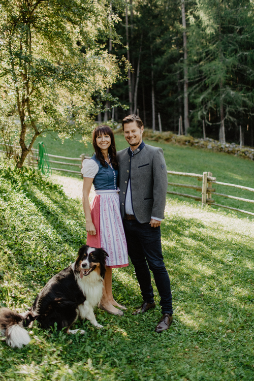 Marilena und Ueli unterwegs mit Haushund Lenny (Wanderhotel Vinschgerhof)